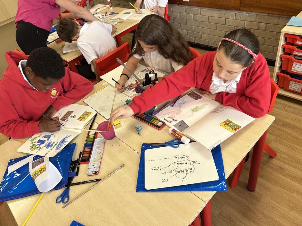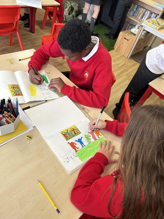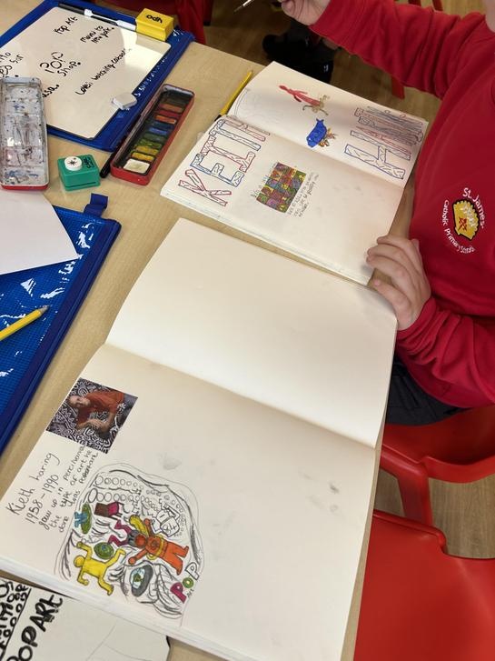To begin our topic, we looked at the artist Keith Haring and his stylisation. We created a double page spread on Keith Haring and his art using a variety of resources that we chose.