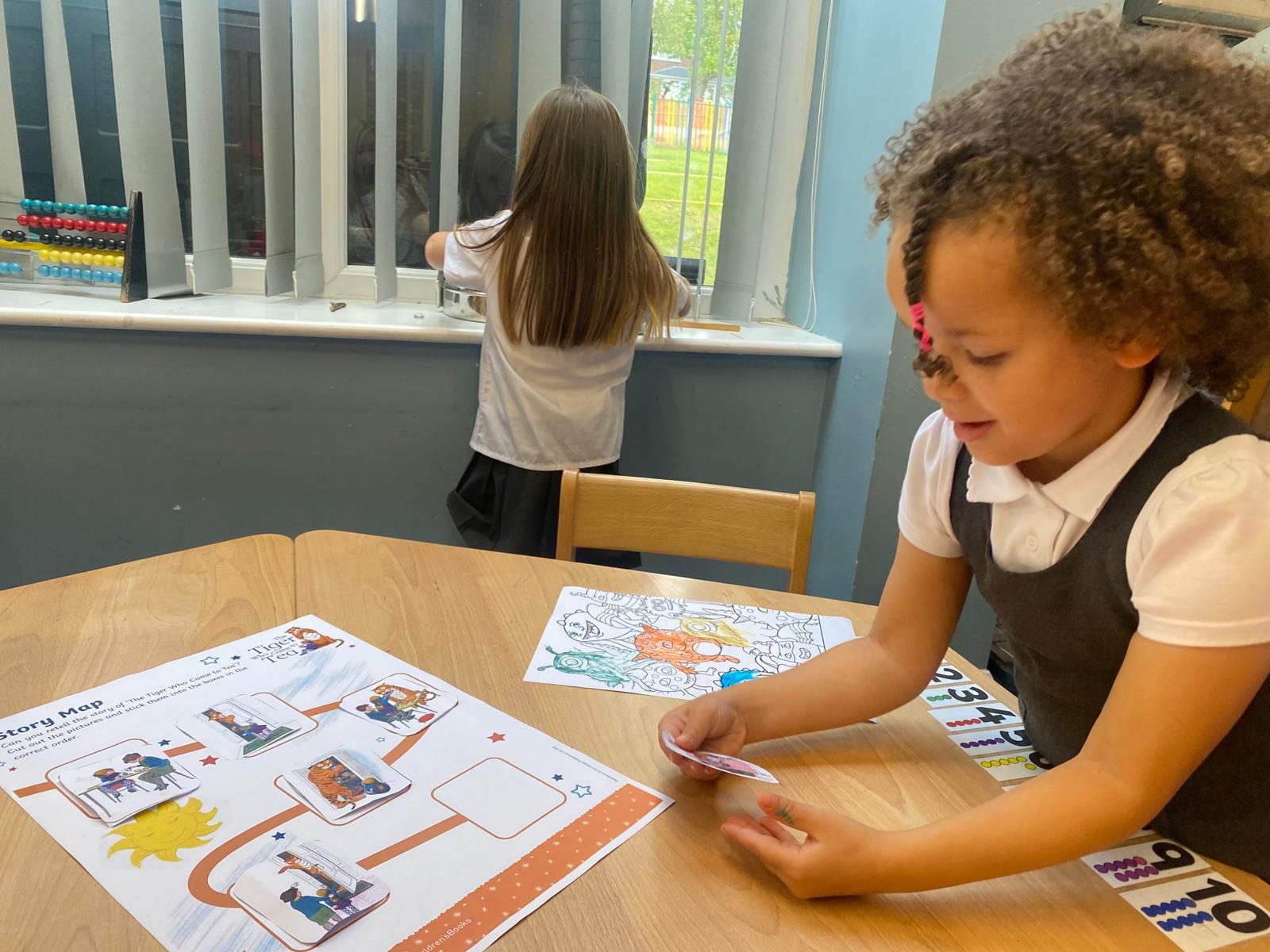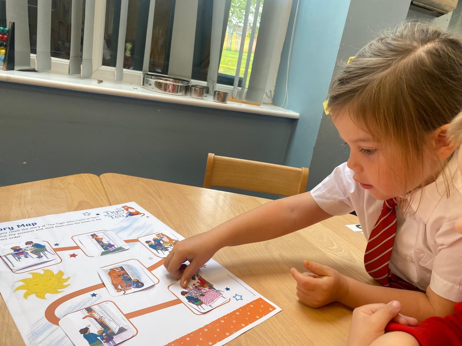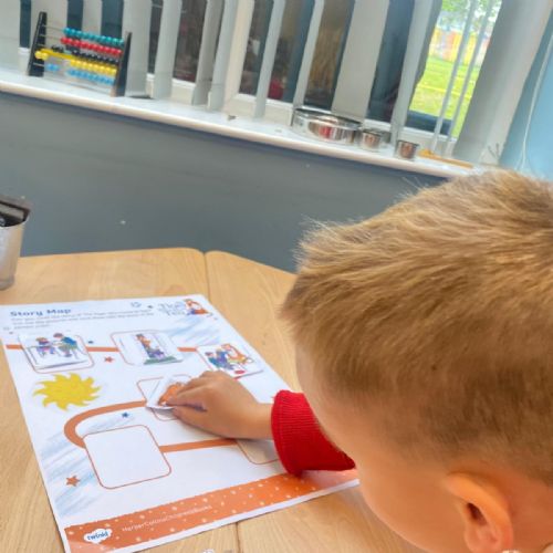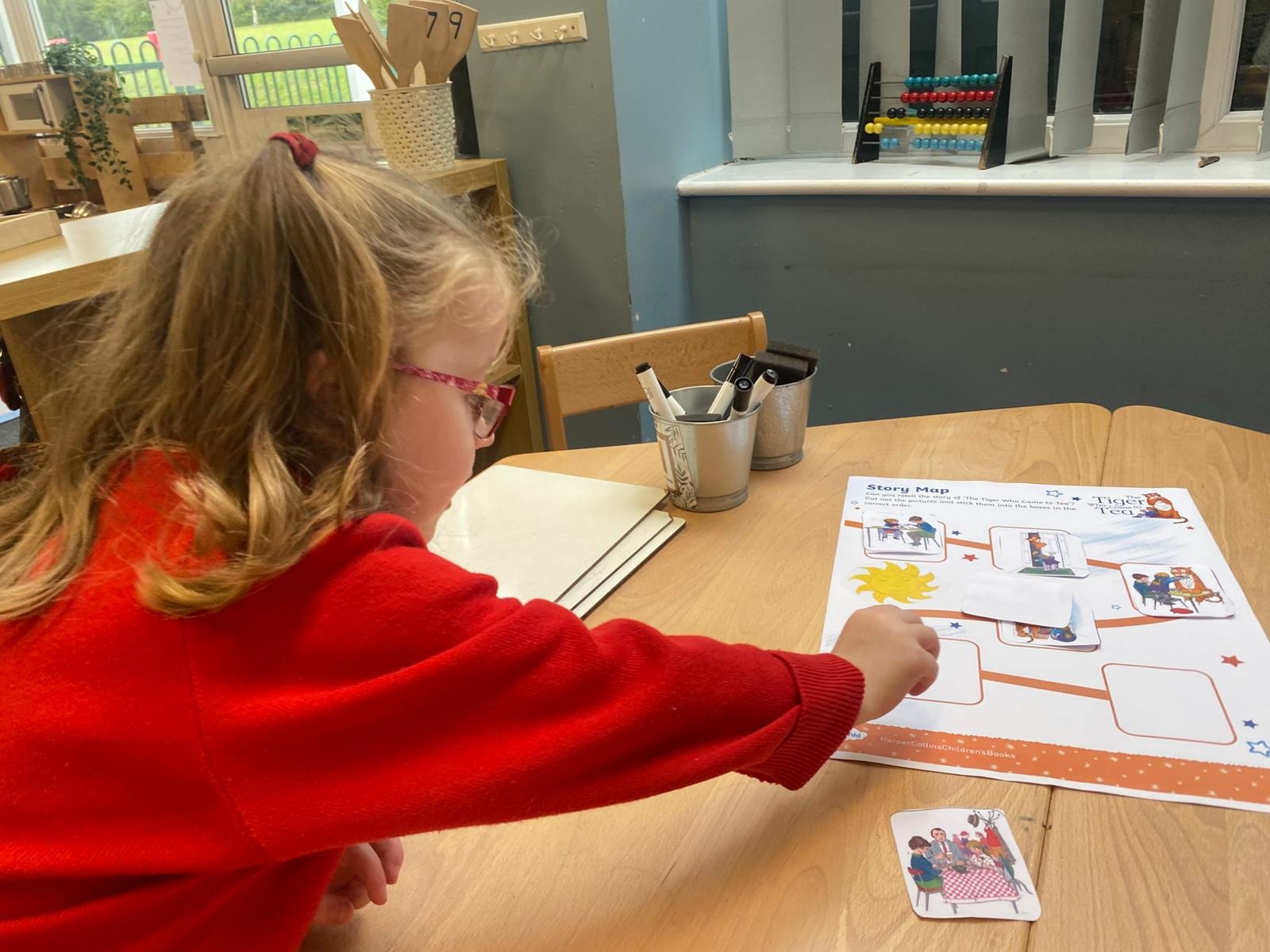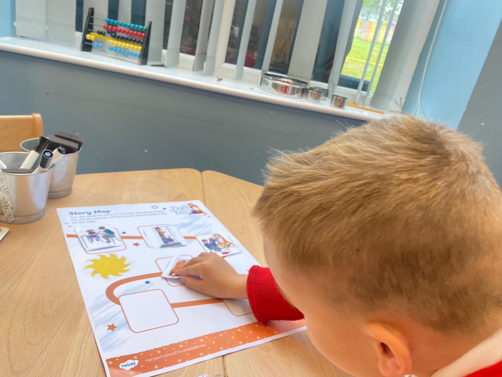 We love listening to stories in Reception. So far this term we have been using story maps, described characters, re-enacted stories, sequenced stories and created a collaborative piece of art based upon the story we were reading.