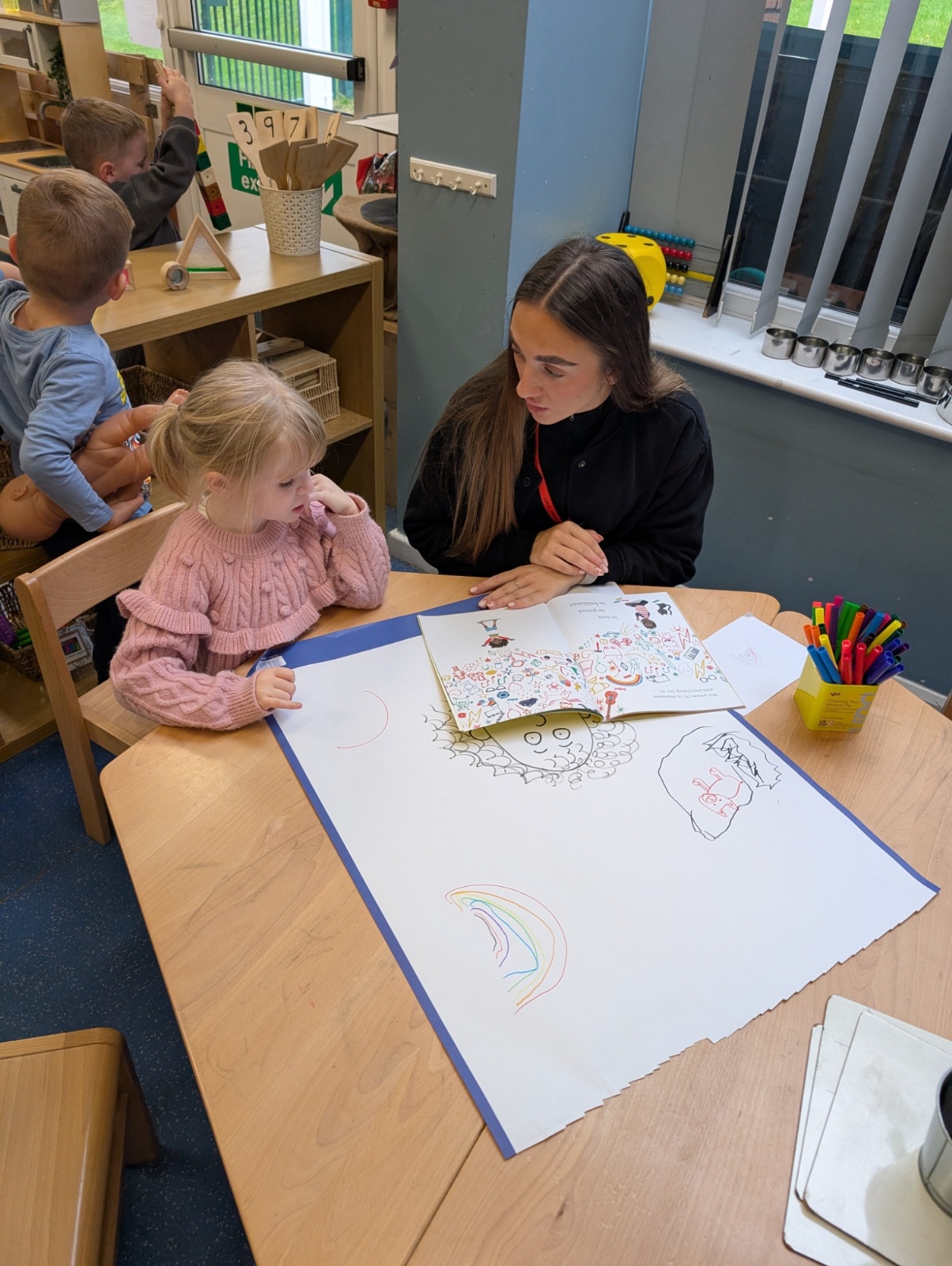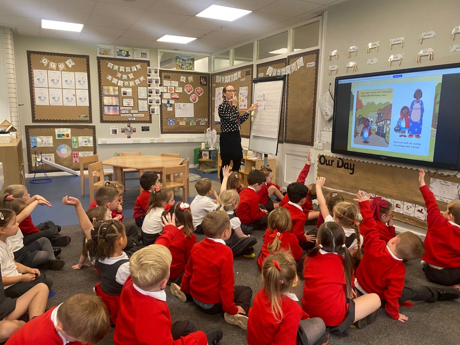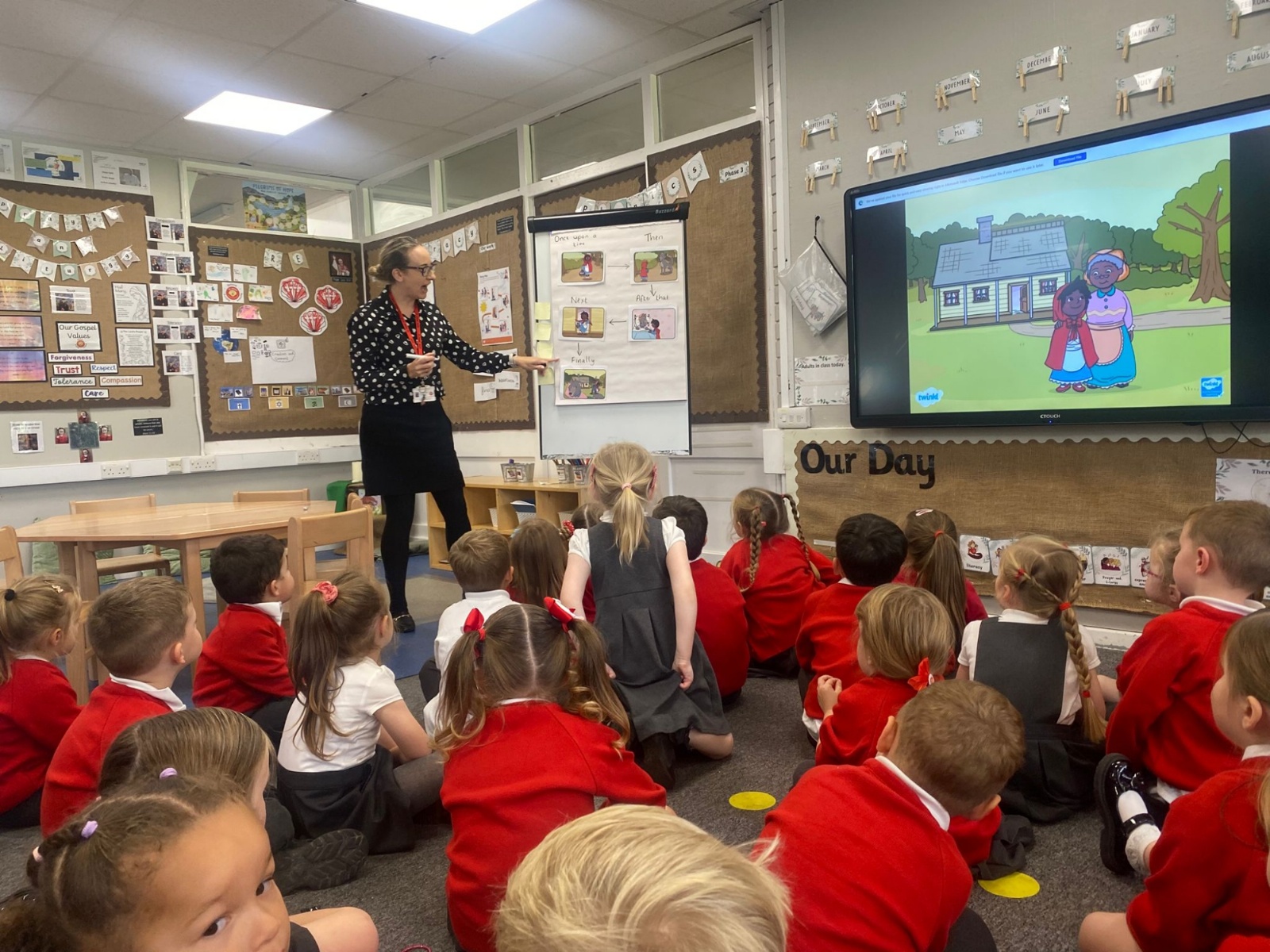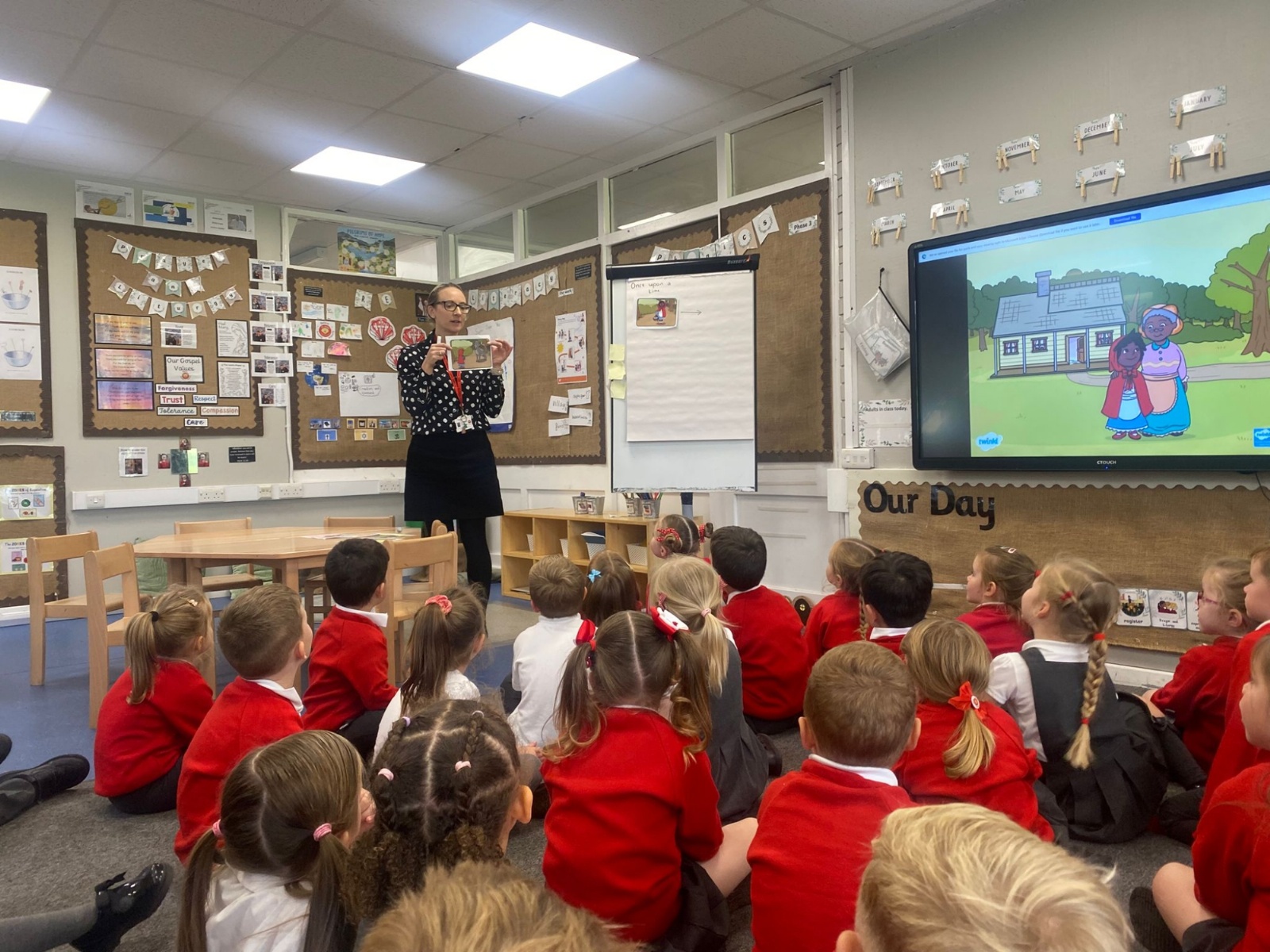 We love listening to stories in Reception. So far this term we have been using story maps, described characters, re-enacted stories, sequenced stories and created a collaborative piece of art based upon the story we were reading.