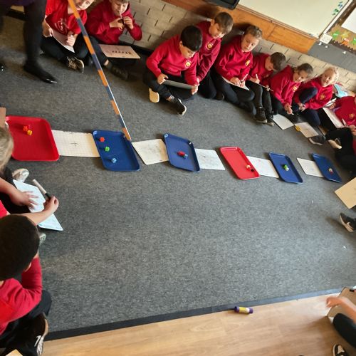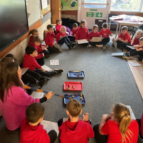 Year 2 have been learning how to use repeated addition using practical equipment.